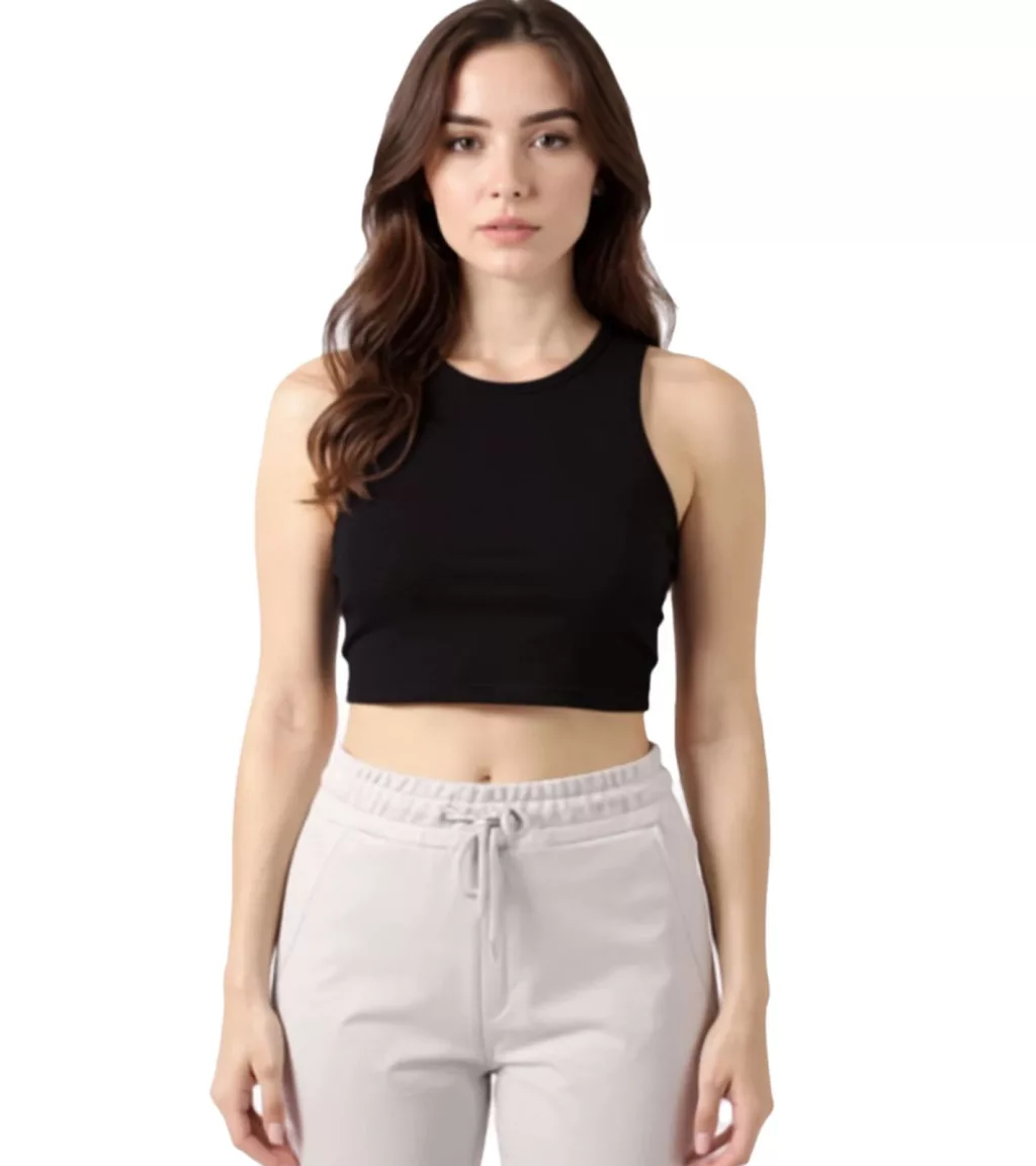 ZEGY női Crop Top, Ribbed pamut Tank Top, ujjatlan, 1085 fekete Méret: XL