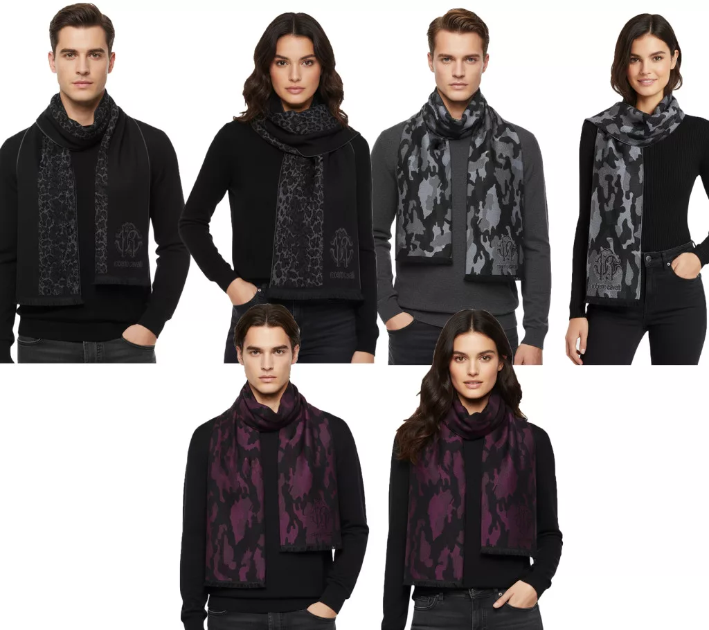 elegáns Roberto Cavalli sál for férfi és női, made of pure gyapjú, elérhető in fekete/szürke, fekete/piros, vagy szürke/fekete Méret: N